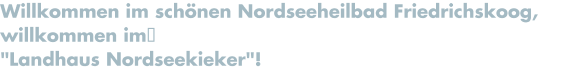 Mit uns können Sie jetzt Ihren Urlaub planen! Ob Sie unsere schöne Küste im Frühling blühen sehen und erwandern möchten, im Sommer am Strand entspannen oder im Herbst und Winter das gesunde Reizklima genießen wollen - wir haben bestimmt ein tolles und überraschend günstiges Angebot für Sie! Aber egal, wann Sie kommen möchten - unser "Landhaus Nordseekieker", das Kur- & Wellnesszentrum Fontamar (= "Quelle des Meeres") und die Küste vor Friedrichskoog sind in jeder Jahreszeit einen gesunden Urlaub wert ...